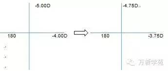 依十字光标图即配戴-3.75DS/-1.00DC×180的角膜接触镜就相当于戴-4.00DS/-1.00DC×180的眼镜在眼前12mm处的光学效果。
